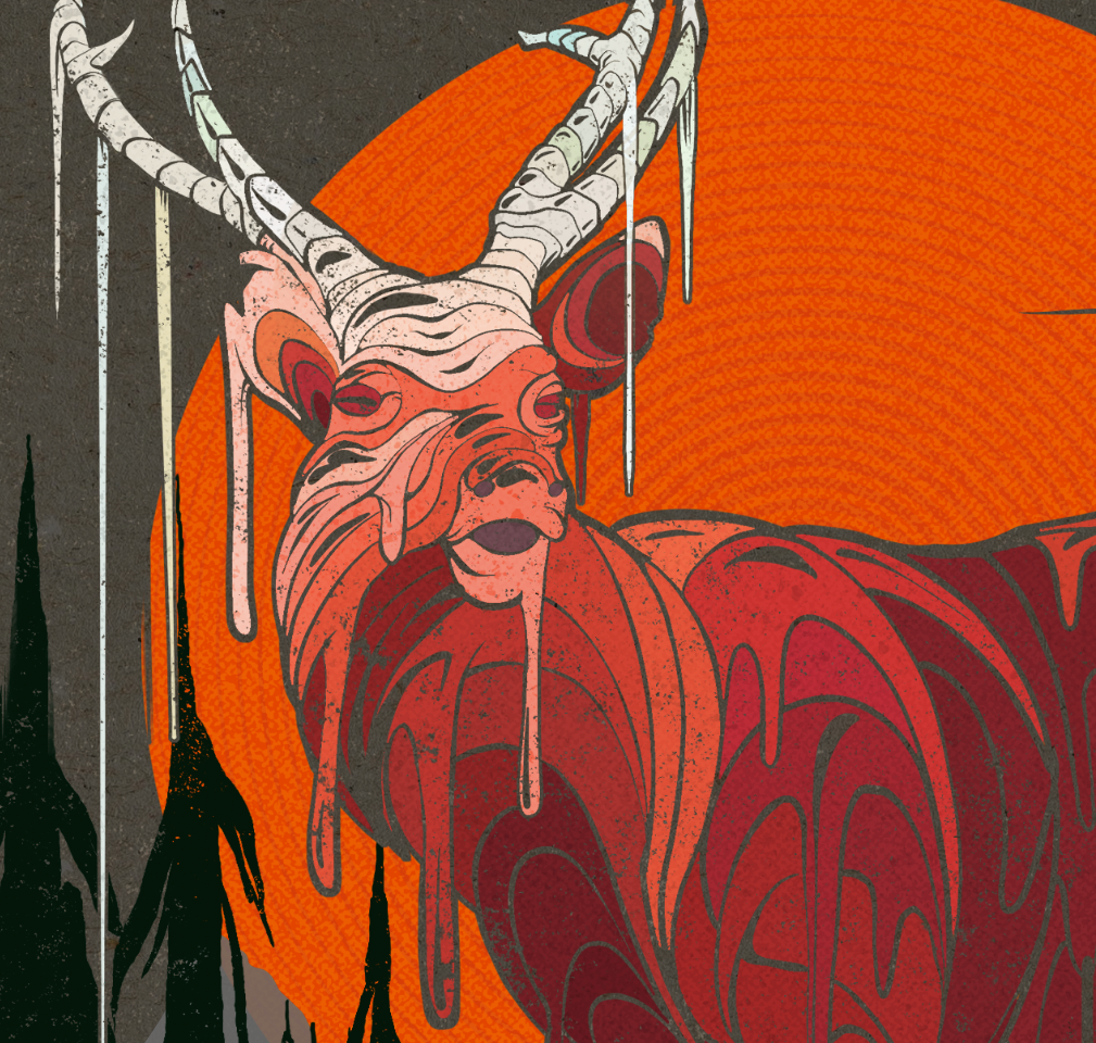 The illustration, of an elk melting in the heat is something I started working on in early summer 2021, and I thought I could put it to good use, maybe raise a few hundred bucks for the cause. So 100% of proceeds from this will go to the Rainforest Flying Squad's Fundrazr campaign.