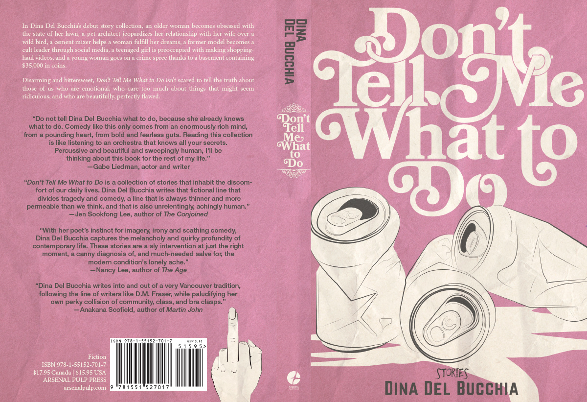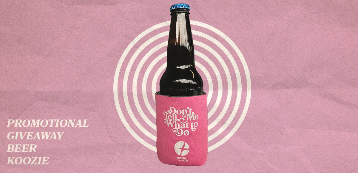 Book Cover (and Promo Beer Koozie) for Dina Del Bucchia's 2018 Short Story Collection from Arsenal Pulp Press